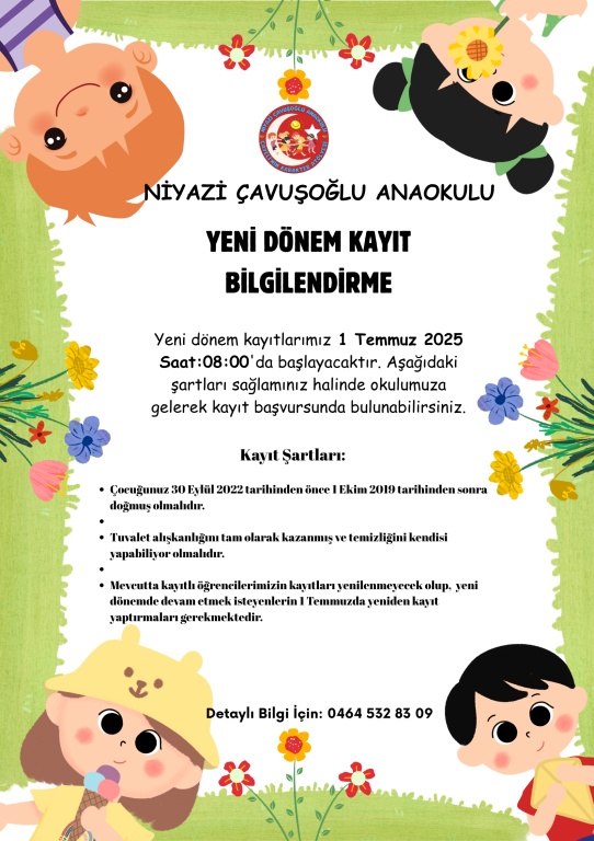 Etiketler :2025-2026 EĞİTİM ÖĞRETİM YILI KAYIT DUYURUSU,
